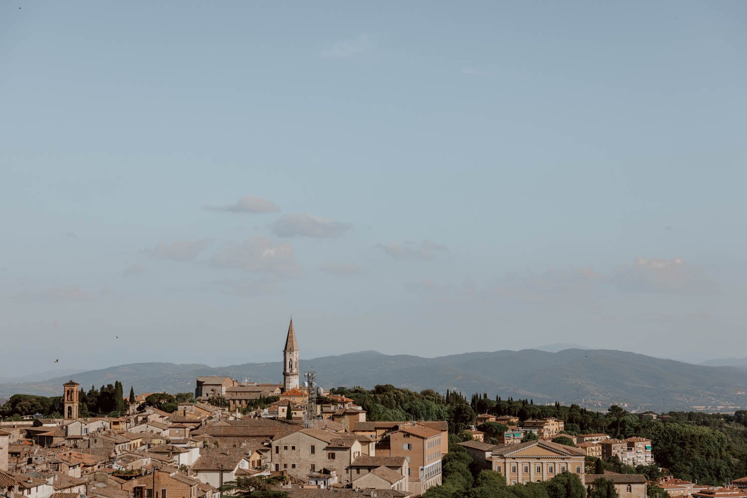 Perugia rises like a crown atop a series of rolling Umbrian hills and valleys. Like many Etruscan-founded cities and towns, its elevated position was primarily for protection, fortification, and strategic defensive views over the landscapes.